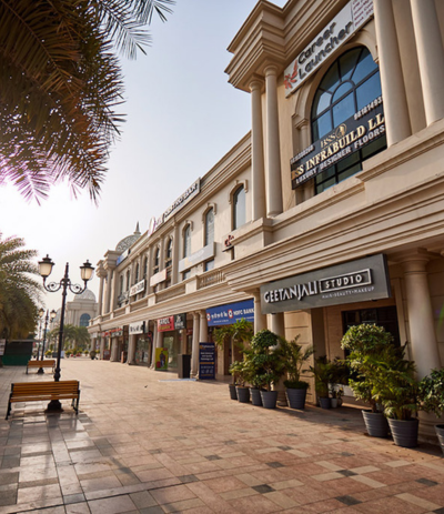 Omaxe World Street offers a range of commercial spaces including retail shops and office spaces, designed to meet diverse business needs.